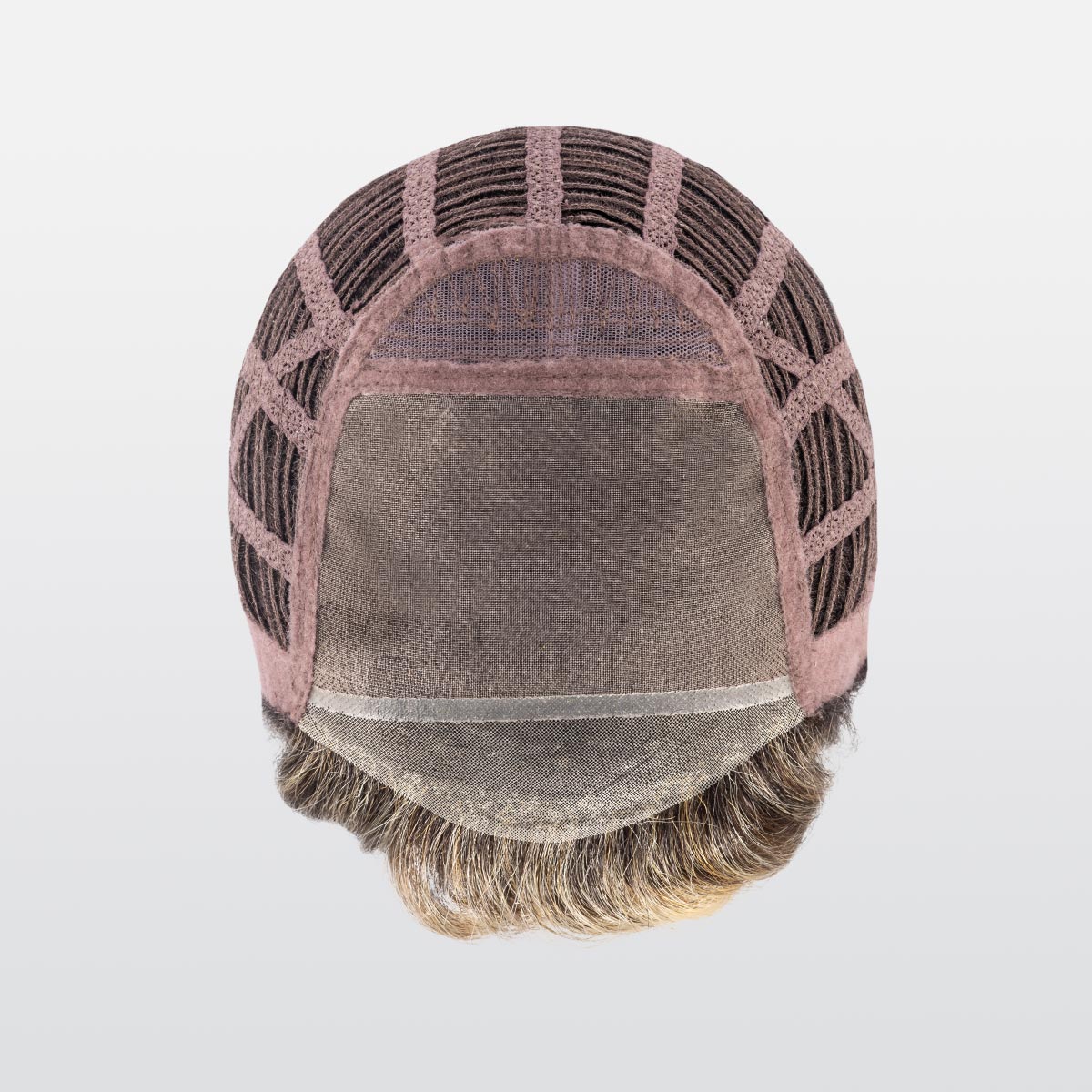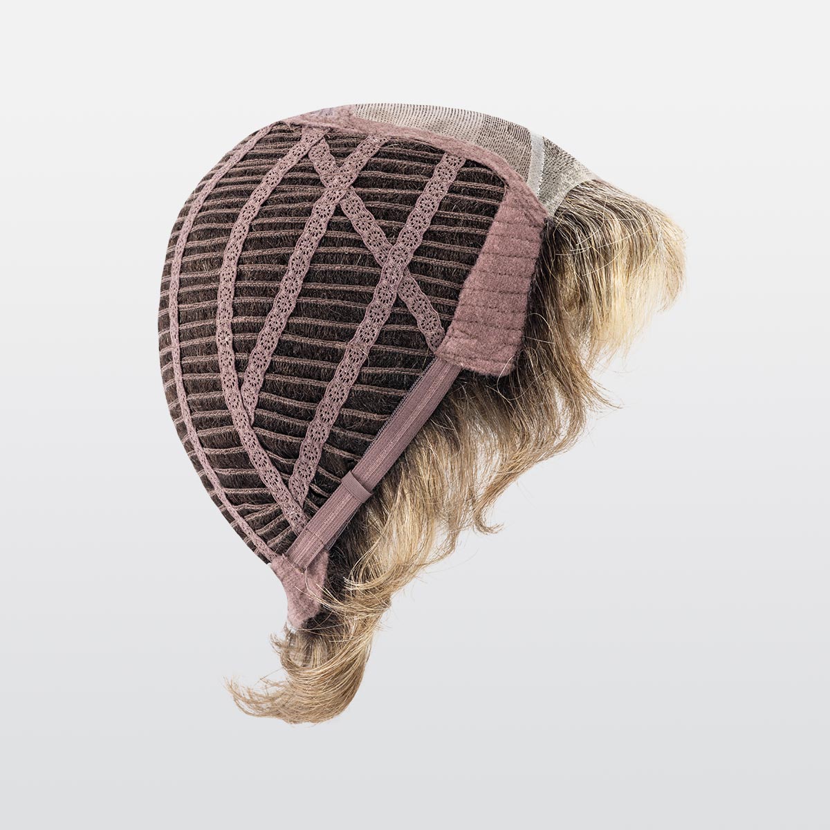 The monofilament covers the upper part of the head. It is an invisible micro-skin on the scalp, where each hair is carefully knotted one by one. The rest of the frame is mainly made up of braids, on which the hair is sewn by machine on very thin stretch cotton ribbons. These braids fit perfectly to the shape of the head and are arranged in an airy way. On the top, the hair hand-tied on the monofilament offers a very natural look.