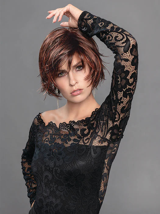 This Echo is going to make a splash! This modern style with its long bangs offers a seductive cut . Its irregular, but neat design, gives this wig a fresh and feminine look . Echo is part of the Perucci collection by Ellen Wille, dedicated to new generation wigs !