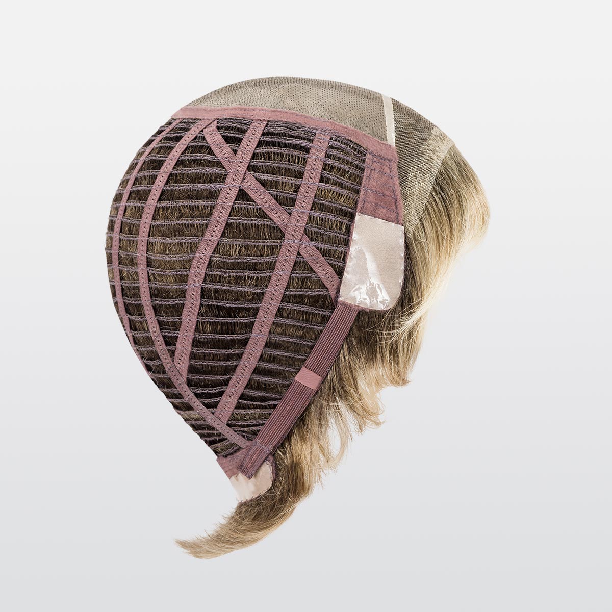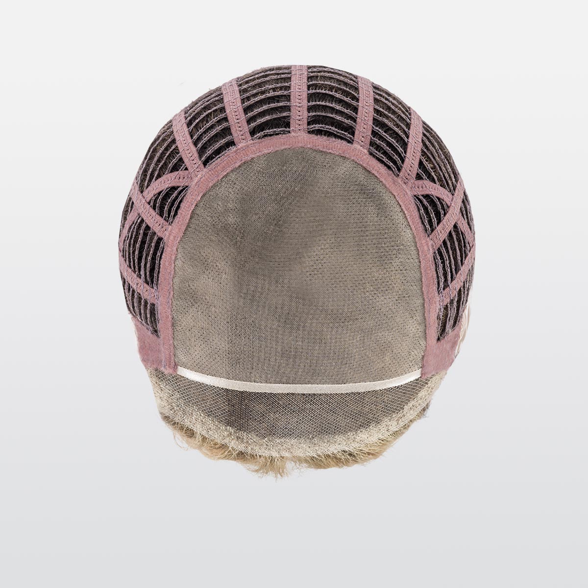 The monofilament covers the upper part of the head. It is an invisible micro-skin on the scalp, where each hair is carefully knotted one by one. The rest of the frame is mainly made up of braids, on which the hair is sewn by machine on very thin stretch cotton ribbons. These braids fit perfectly to the shape of the head and are arranged in an airy way. On the top, the hair hand-tied on the monofilament offers a very natural look.