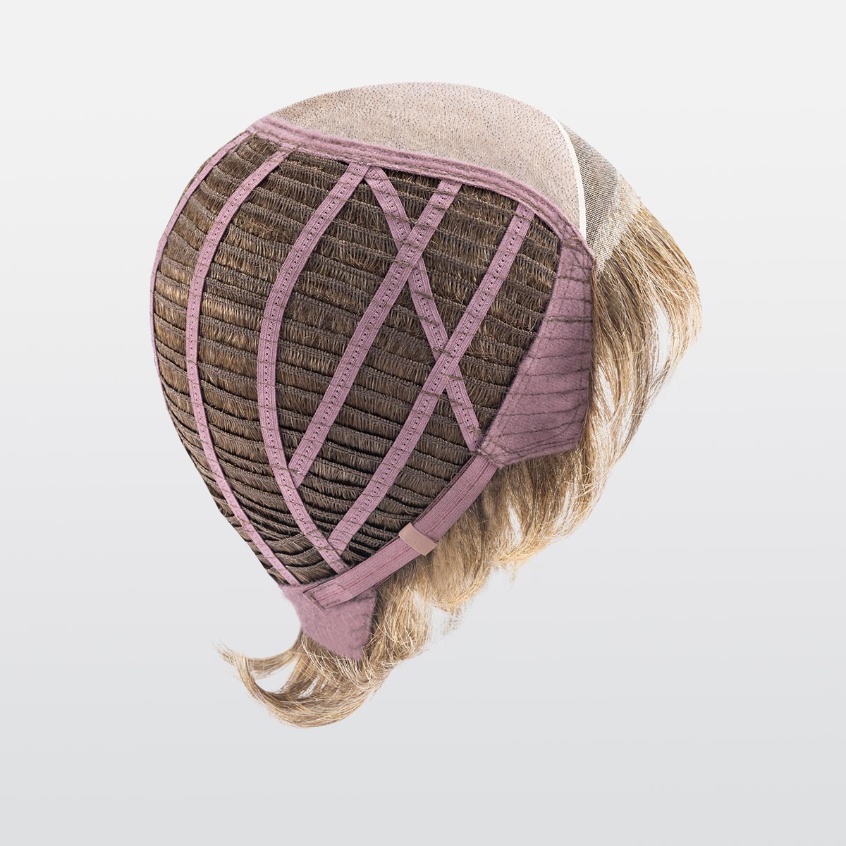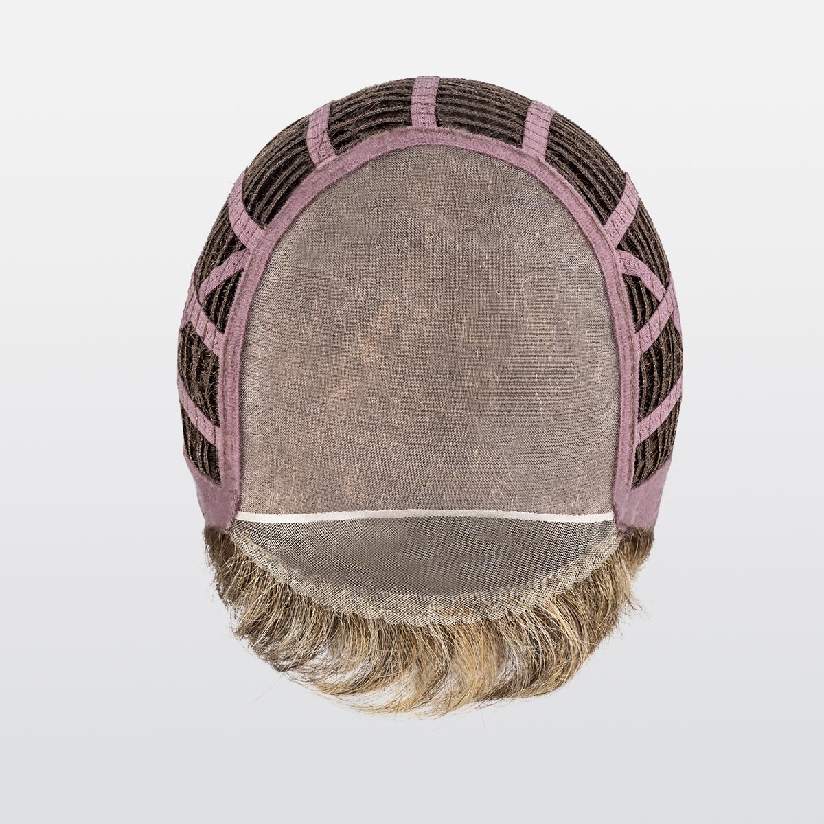 The monofilament covers the upper part of the head. It is an invisible micro-skin on the scalp, where each hair is carefully knotted one by one. The rest of the frame is mainly made up of braids, on which the hair is sewn by machine on very thin stretch cotton ribbons. These braids fit perfectly to the shape of the head and are arranged in an airy way. On the top, the hair hand-tied on the monofilament offers a very natural look.