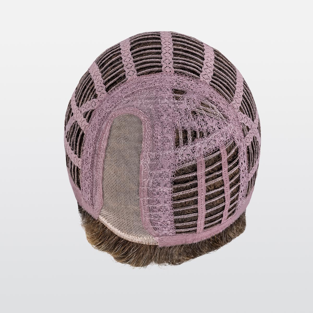 Ultra natural at the parting or roundabout, this type of frame allows these areas to appear organically thanks to the transparency of the micro-skin. Each hair is carefully tied one by one, and the shape of this part, whether round or parted, varies according to the cuts, thus making the hair particularly realistic. The hair implanted on the monofilament gives the impression that it takes root directly on the scalp. The rest of the frame is mainly composed of braids, where the hair is sewn by machine on very fine stretch cotton ribbons. These braids adapt perfectly to the shape of the head and are arranged in an airy manner.
