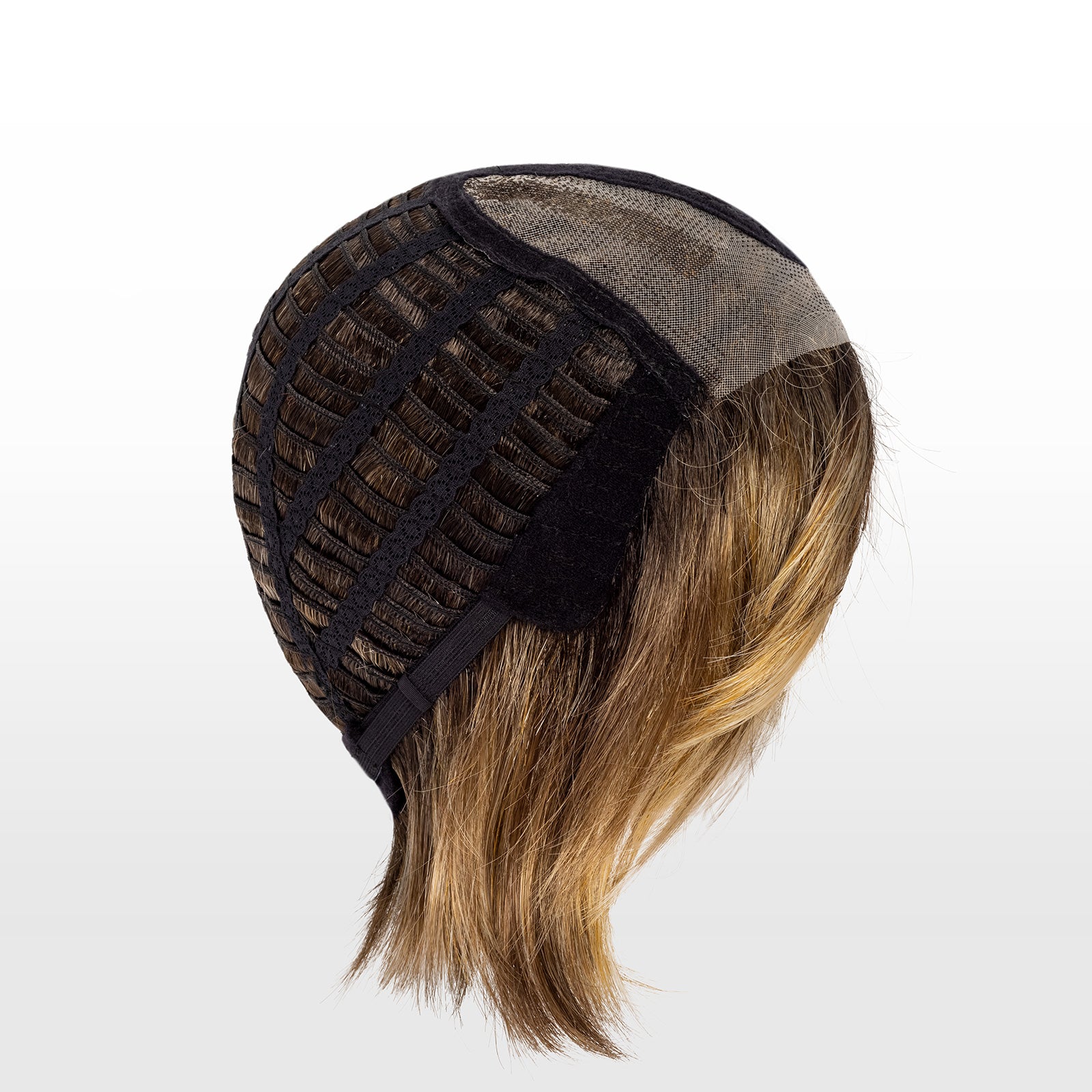 Ultra natural at the parting or roundabout, this type of frame allows these areas to appear organically thanks to the transparency of the micro-skin. Each hair is carefully tied one by one, and the shape of this part, whether round or parted, varies according to the cuts, thus making the hair particularly realistic. The hair implanted on the monofilament gives the impression that it takes root directly on the scalp. The rest of the frame is mainly composed of braids, where the hair is sewn by machine on very fine stretch cotton ribbons. These braids adapt perfectly to the shape of the head and are arranged in an airy manner.