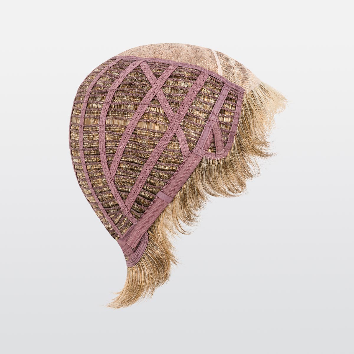 The monofilament covers the upper part of the head. It is an invisible micro-skin on the scalp, where each hair is carefully knotted one by one. The rest of the frame is mainly made up of braids, on which the hair is sewn by machine on very thin stretch cotton ribbons. These braids fit perfectly to the shape of the head and are arranged in an airy way. On the top, the hair hand-tied on the monofilament offers a very natural look.