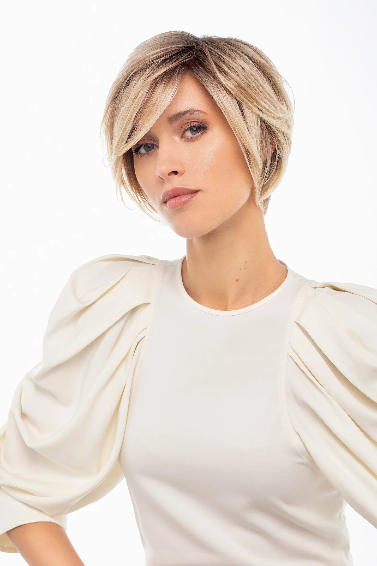 The Hi Flirt Small from Gisela Mayer 's Small & Large collection is a short cut with a unique and assertive style. Thanks to its layered structure and asymmetrical lines , it attracts all eyes and is suitable for those who like to stand out from the crowd. Designed for small head sizes (52 to 54 cm), it ensures a comfortable fit . Made from high-end heat-resistant synthetic fiber , it allows you to choose between an ultra-smooth look or slightly curly for more dynamism.