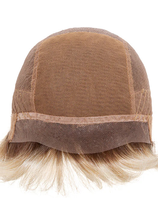 The monofilament covers the upper part of the head. It is an invisible micro-skin on the scalp, where each hair is carefully knotted one by one. The rest of the frame is mainly made up of braids, on which the hair is sewn by machine on very thin stretch cotton ribbons. These braids fit perfectly to the shape of the head and are arranged in an airy way. On the top, the hair hand-tied on the monofilament offers a very natural look.