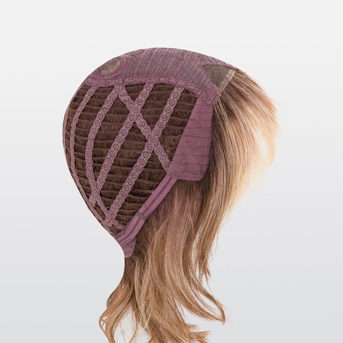 Ultra naturel au niveau de la raie ou du rond-point, ce type de monture permet à ces zones d'apparaître de manière organique grâce à la transparence de la micro-peau. Chaque cheveu est soigneusement noué un par un, et la forme de cette partie qu'elle soit ronde ou en raie varie selon les coupes, rendant ainsi la chevelure particulièrement réaliste. Les cheveux implantés sur le monofilament donnent l’impression qu'ils prennent racine directement sur le cuir chevelu. Le reste de la monture est principalement composé de tresses, où les cheveux sont cousus à la machine sur des rubans en coton extensible très fins. Ces tresses s'adaptent parfaitement à la forme de la tête et sont disposées de manière aérée.