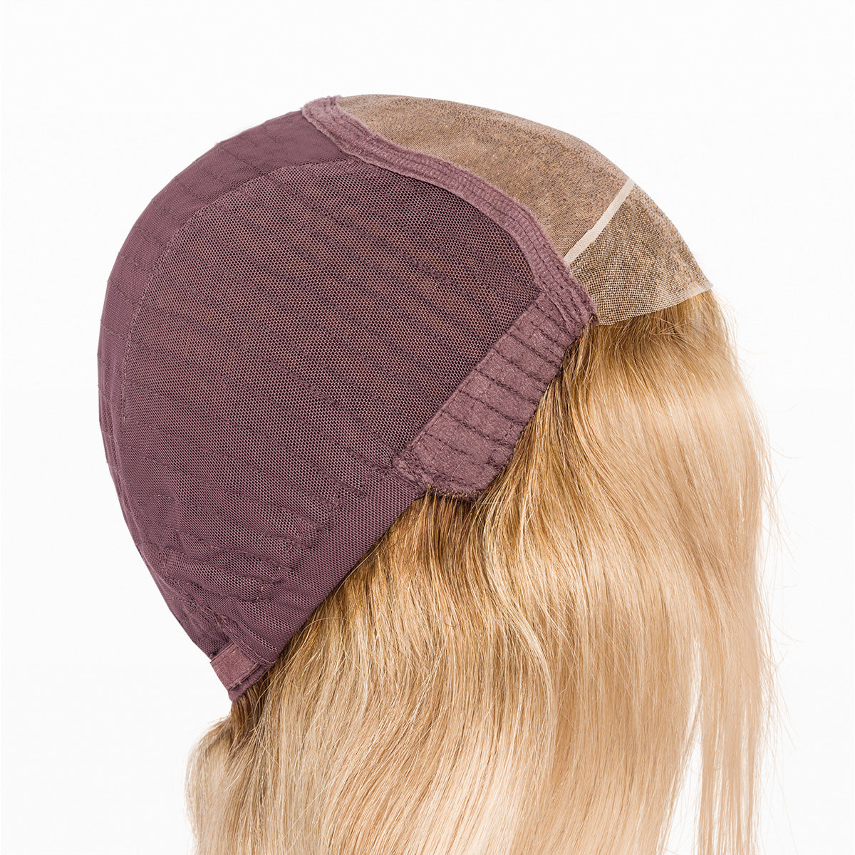 Le monofilament couvre la partie supérieure de la tête. Il s'agit d'une micro-peau invisible sur le cuir chevelu, où chaque cheveu est soigneusement noué un par un. Le reste de la monture est principalement constitué de tresses, sur lesquelles les cheveux sont cousus à la machine sur des rubans en coton extensible très fins. Ces tresses s'ajustent parfaitement à la forme de la tête et sont agencées de manière aérée. Sur le dessus, les cheveux noués à la main sur le monofilament offrent un rendu très naturel.