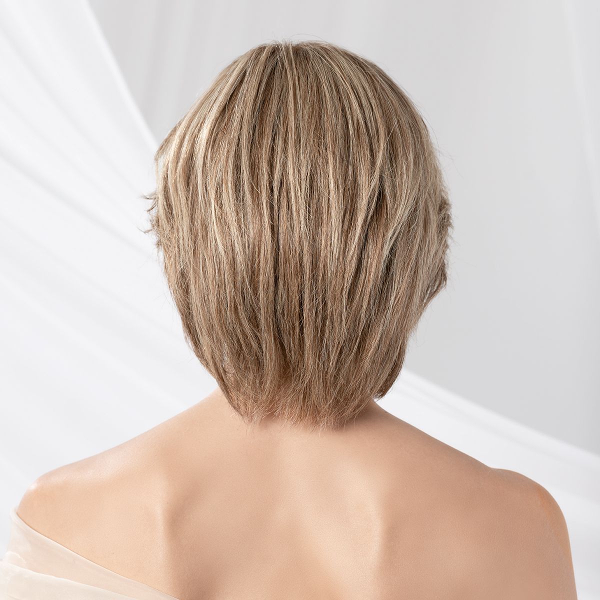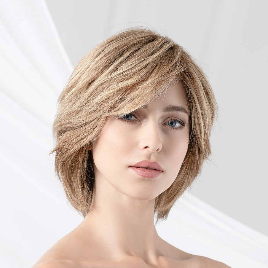 La Brilliance Plus Deluxe d'Ellen Wille est une perruque femme 100% cheveux naturels, dotée de couches courtes et stylées. La frange latérale encadre délicatement le visage et peut être ajustée par un coiffeur.