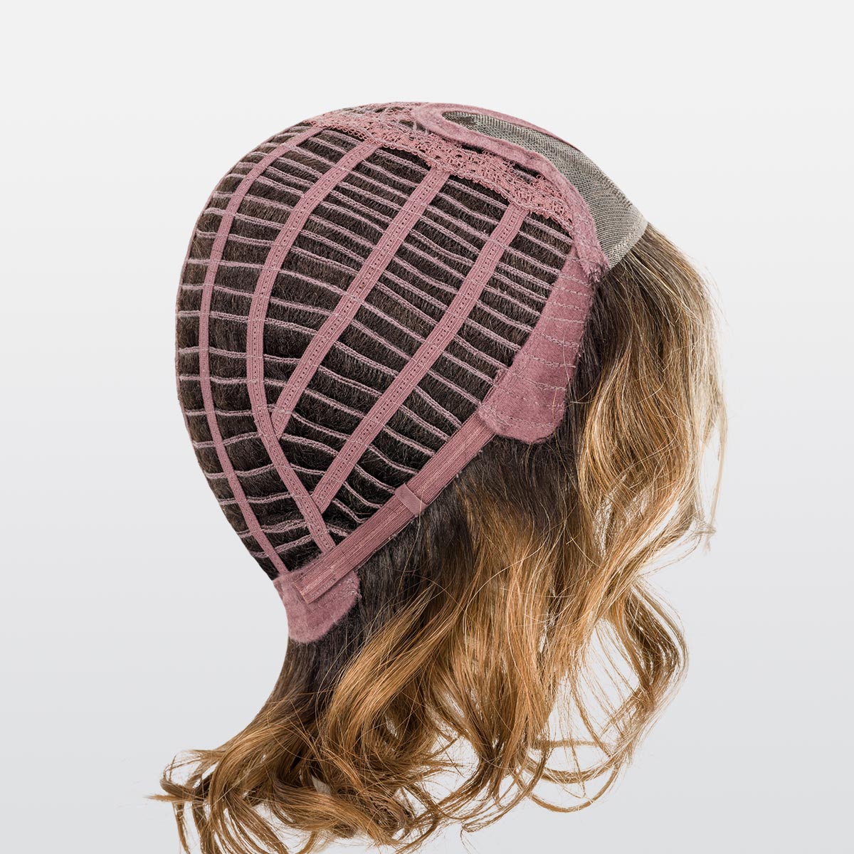 Ultra naturel au niveau de la raie ou du rond-point, ce type de monture permet à ces zones d'apparaître de manière organique grâce à la transparence de la micro-peau. Chaque cheveu est soigneusement noué un par un, et la forme de cette partie qu'elle soit ronde ou en raie varie selon les coupes, rendant ainsi la chevelure particulièrement réaliste. Les cheveux implantés sur le monofilament donnent l’impression qu'ils prennent racine directement sur le cuir chevelu. Le reste de la monture est principalement composé de tresses, où les cheveux sont cousus à la machine sur des rubans en coton extensible très fins. Ces tresses s'adaptent parfaitement à la forme de la tête et sont disposées de manière aérée.