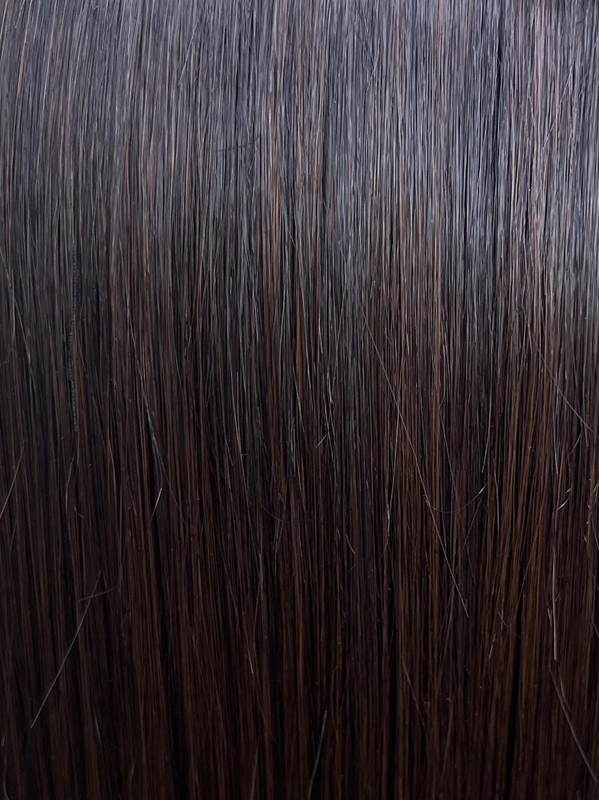 Ultra naturel au niveau de la raie ou du rond-point, ce type de monture permet à ces zones d'apparaître de manière organique grâce à la transparence de la micro-peau. Chaque cheveu est soigneusement noué un par un, et la forme de cette partie qu'elle soit ronde ou en raie varie selon les coupes, rendant ainsi la chevelure particulièrement réaliste. Les cheveux implantés sur le monofilament donnent l’impression qu'ils prennent racine directement sur le cuir chevelu. Le reste de la monture est principalement composé de tresses, où les cheveux sont cousus à la machine sur des rubans en coton extensible très fins. Ces tresses s'adaptent parfaitement à la forme de la tête et sont disposées de manière aérée.